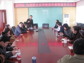 为加强青年教师队伍建设,培养和展示青年教师的业务能力,3月14日下午,法(马)学院在阜成路校区举行了青年教师教学基本功比赛。李仁玉院长等学院领导和各教研室主任及分工会委员组成了评审委员会。杜凡、侯雪梅、李金、张宏伟、邹亚莎、郭纹静、颜苏七位青年教师作为选手参加了比赛。比赛由副院长、院工会主席刘东超教授主持。