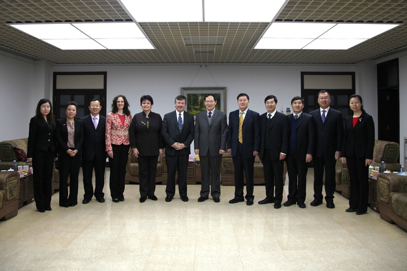 陪同会见的还有学校办公室主任吉涛、教务处处长张晓堂、研究生部主任何明珂、国际交流与合作处处长罗朝能、国际交流与合作处副处长刘影。