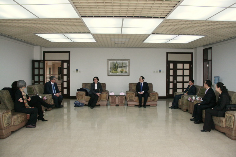 3月19日上午,谭向勇校长在良乡校区接见了前来我校访问的美国昆尼皮亚克大学副校长黛安娜·阿里扎(Diane Ariza)及其代表团一行4人。陪同黛安娜副校长来访的有昆尼皮亚克大学商学院副院长理查德·麦卡锡(Richard McCarthy)、商学院副院长苏珊·麦克蒂尔南(Susan McTiernan)和商学院教授何晓红。李朝鲜副校长陪同接见。
