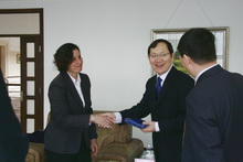 谭校长对黛安娜副校长一行访问我校表示热烈的欢迎。他向来宾介绍了我校的历史、发展历程和现状,并希望双方能够创造出更多的机会,加深和拓展两校之间的合作与交流。