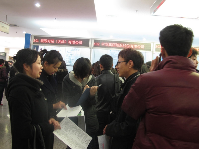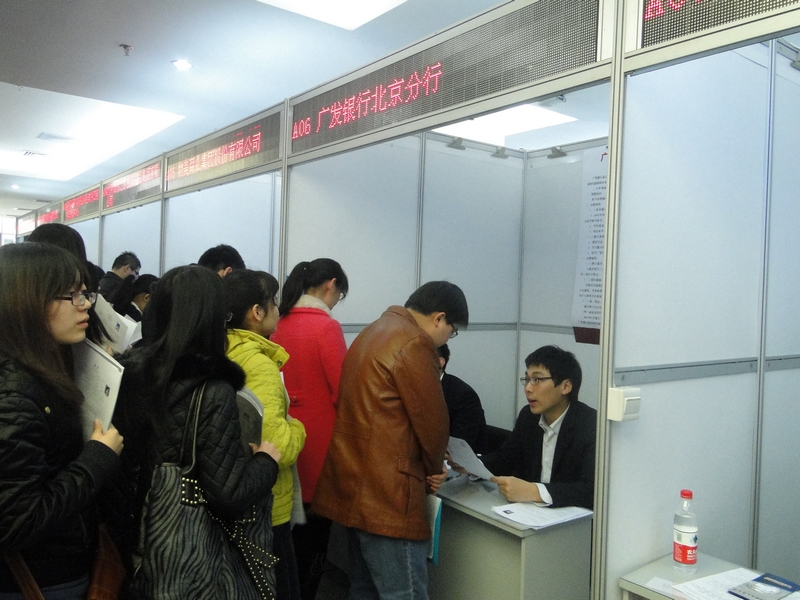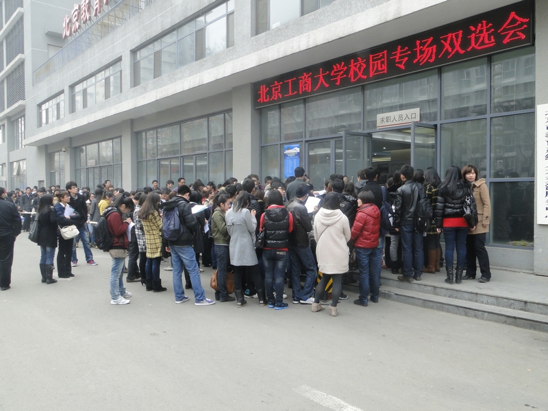 在这次的双选会会场,记者就遇到了一位材机学院的大三女生,她特意从良乡校区赶来大学生就业指导中心,提前参与到了紧张严肃的求职现场中,她还投了几份简历,不放过参与实习的机会。她感慨道:“大学生求职一定要放低姿态。”