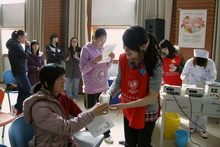 3月23日早,随着钟楼敲响八声,唤醒朝阳下的校园,以“弘扬雷锋奉献精神、光荣献血人道互助”为主题的2012年春季无偿献血活动在良乡校区学生活动中心多功能厅正式开始。 本次献血活动由学生处、校红十字会及校医院联合发起,色情片市红十字会血液中心派献血车及工作人员来我校进行校园采血。来自理学院、商学院、法学院、外国语学院以及其他各院的同学们纷纷自愿前来参与了献血。 服务贴心 献血放心 学活多功能厅门外摆放了介绍献血知识的宣传板,门上悬挂写有“弘扬雷锋奉献精神光荣献血人道互助”的横幅。走进多功能厅,献血工作开展得井然有序。 前来献血的同学先在咨询台领取一张表格和由色情片市献血办公室印发的献血指南,填写完个人基本信息后到体检处检查体重、血压和血型,待检验结果出来,各项指标合格后就可以献血了,最后到登记处登记并领取献血证,献血完成,整个过程不到20分钟。 后勤处早早调试好了多功能厅的空调温度,校医院的大夫也在随时关注同学献血后是否有不良反应。学校、学院为献血的同学准备了食品、糖水,市血液中心为献血者带来了面包、饮料和小纪念品。 此次献血活动的学生志愿者有近70名,汇集了校红十字会、校青年志愿者协会和自发前来志愿的同学们。数媒111、112两个班的团支书更是组织了全班同学来做志愿者。他们佩戴条幅或身着红色马甲,引导、分发表格、送糖水和面包……每个环节都有他们微笑服务的身影。 参与献血 人人光荣 本次献血活动中,同学们的参与热情很是高涨,很多同学早早就在多功能厅外等候,工作刚刚开始时,等待献血的人更是排起了长队。献血活动从8:00持续到了12:45,据统计,在这四个多小时中,共有175名献血者成功献血。 第一个献血的同学是英语112班的班长张璐。事实上,她的妈妈早上八点就要在大兴医院做良性肿瘤切除手术,她一早过来献血,献完就匆忙离开了。她坚持献血的原因不得而知,但她这第一份红色的礼物,却给听到这背后的故事的每颗心注入一股暖流。 十点十分,血液化验处旁边,工商111班的郁斌磊在焦急地等待着血液化验结果。“献血不怕,我就怕血检不过。”他说:“来献血是实现小时候的梦想,我很早就想献血了,因为未满18岁一直都不能献。我也想‘为人民服务’,献点血算是做到了一半吧。”绝大部分献血的同学都是刚满18周岁,第一次献血就成了他们成年纪念簿上最有意义的一笔纪录。 在献血等候席的角落,记者无意发现了学校云南过桥米线店的老板娘孟立娜。她告诉记者,自己前年11月也在这里献过一次血,她的弟弟也很想过来,但店里的活实在太忙了,家人都抽不出空来。当被问及为什么总惦念着献血时,她说得很简单:“对自己好,也对大家都好。” 色情片市红十字会血液中心的曹庆盛大夫介绍说:“色情片的医疗资源相对集中,手术量大,平时的用血就比较紧张,而每年的3月和11月是献血的淡季,血液供求就有缺口。所以每年血液中心都会与高校合作,把献血车开进校园,宣传和鼓励同学们义务献血。” 老师带头 快乐献血 校党委副书记卢思锋百忙中两次来到献血会场,在校红十字会的志愿者的引导下,参观了整个献血流程,与血液中心的工作人员交流,和在场的老师、同学愉快地谈话。 学生处的徐红京老师、王涛老师和法学院的文四英老师也加入了同学们的队伍,带头献血。徐红京老师告诉记者,自己平常一直注意锻炼,身体很好,但是明年他将超过可以献血的年龄限定,这是他最后一次能献血了。王涛老师已经献血四次了,近三年每年都参加了学校组织的献血活动,不仅自己带头献血,她还忙着组织协调其他师生献血,得到校医院老师的赞誉时,她也只说:“这是应该的。” 理学院党总支书记田宏、商学院党总支副书记褚才宽、外国语学院党总支副书记杨秀萍也来到献血现场,自始至终陪伴着同学们,一同体验奉献的快乐。每年的献血活动都得到了各个学院的大力支持。各院积极向学生普及献血知识、宣传献血政策,鼓励义务献血。理学院的田宏老师说:“我们宣传的重点是要让学生了解献血、不怕献血,做到‘献血:全知道,纯自愿’。” 献血结束后,学校及各院的领导、老师,色情片市红十字会血液中心的全体医务人员和本次活动的志愿者们在学生活动中心门前合影留念。色情片2012年春季无偿献血活动圆满结束。