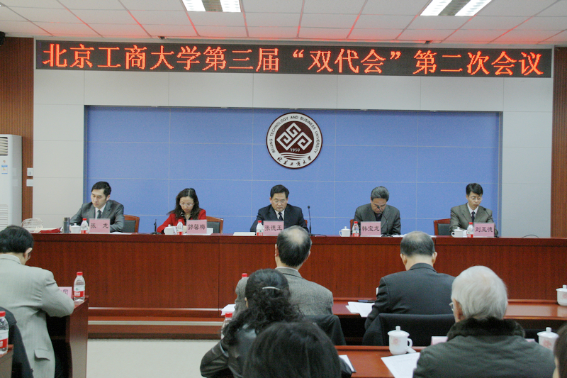 3月25日,学校第三届“双代会”第二次会议在阜成路校区召开。大会以“求真务实,开拓创新,团结动员广大教职工积极投身学校教育教学改革”为主题。包括校领导孙尧东、谭向勇、卢思锋、张德玉、孙宝国、李朝鲜、张耘、呼文亮、方德英在内的116名正式代表出席大会。学校离退休老领导王福成、丁士堃应邀参会。各单位、各部门的主要负责人列席了大会。