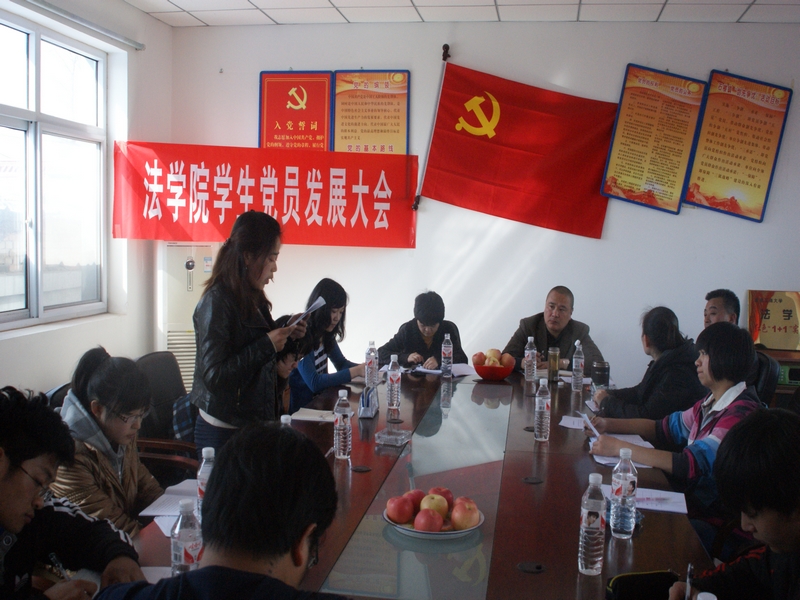 面对着鲜红的党旗,在法学院良乡校区学生党支部书记姚林娜的主持下,四位发展对象激动而恳切地宣读了入党志愿书,表达了她们积极向党组织靠拢的坚定决心和成为一名中国共产党员的热切希望。经过严格的组织发展程序后,全体老党员和四名新党员一起高声朗诵入党誓词。