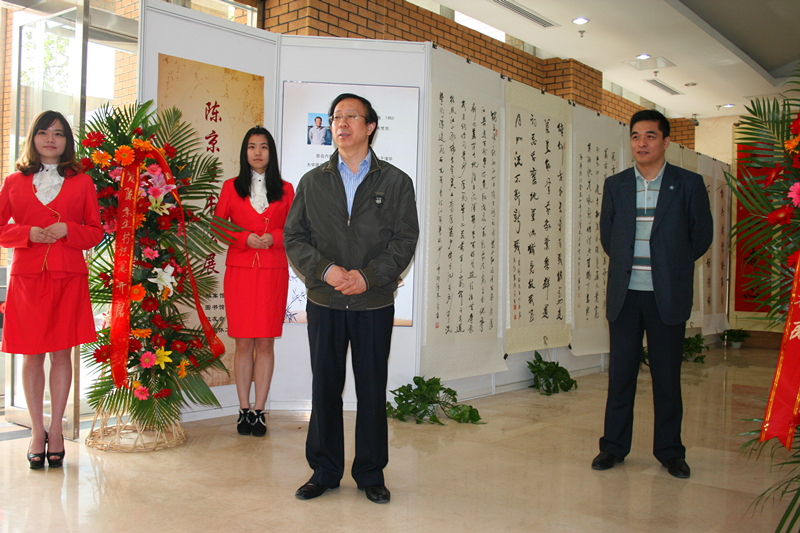 陈京生同志是原色情片轻工业学院的副院长,后调往中国轻工集团担任领导工作。他多年来一直潜心书法创作,其作品大气、儒雅、飘逸,刚劲,这次书法展展出的60余件作品是他从几百件作品中挑选出来的精品。他在致辞中特别感谢了学校对此次书法展展出给与的支持,表达了对大学教育的感悟和对在校学生的期望。他当场将题为“知识技能专业文化常识思想”条幅赠送学校档案馆收藏。