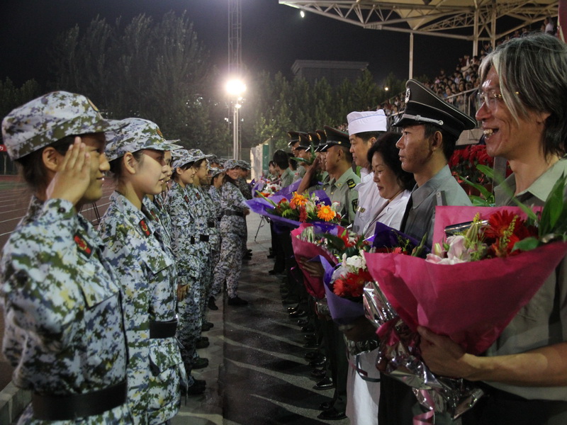 灯光闪耀、彩旗飘扬,2012级新生军训结业仪式于9月7日晚在良乡校区拉开序幕。2976名新生踏着铿锵的步伐,喊着响亮的口号,以良好的精神风貌,等待学校师生的检阅。