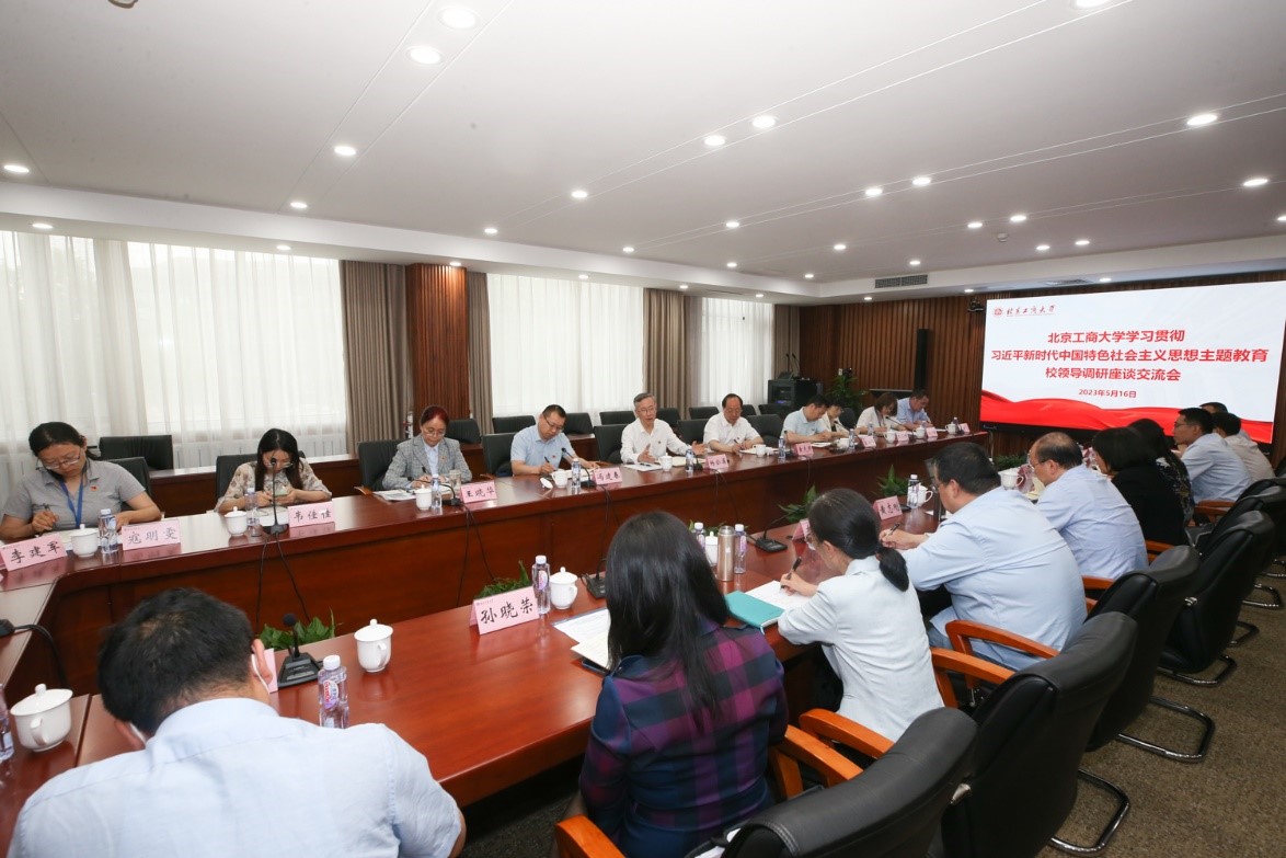 为深入学习贯彻习近平新时代中国特色社会主义思想,扎实推动主题教育走深走实,5月16日下午,学校在良乡主校区召开主题教育校领导调研座谈交流会。市委第十七巡回指导组组长杨公鼎、联络员冯建春到场指导,学校党委书记、主题教育领导小组组长黄先开作总结讲话。会议由学校党委常委、副校长刘敏华主持。