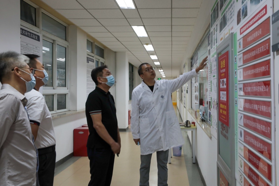 会前,杜金柱一行深入学校蛋白资源开发与营养食品研究实验室、食用香精实验室进行实地参观。
