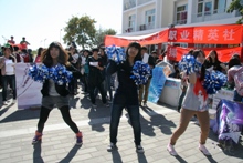 10日当天10点半,各社团开始陆续展现自己的风采:别具一格的服装、火爆激情的舞蹈,震撼人心的音乐。随着中午放学铃声的响起,招新活动达到了高潮,越来越多的同学来到百团招新现场。“这是我见过最宏大,最正式的一次招新活动。”接受采访的某社长说道。由于招新的社团种类和数目繁多,同学们都详细地询问着各社团的情况,精心挑选自己喜欢的社团,希望通过积极参与社团活动丰富自己的大学生活。老社员们则不遗余力的为自己的社团呐喊助威,为新生们耐心的讲解介绍。正午艳阳高照,但招新现场的气氛比阳光还要火热。同学们高涨的参与热情,各个社团热心的积极组织,使百团招新活动热闹有序地进行着。活动结束后,社团部的工作人员和各个社长还对活动场地进行了清扫工作。