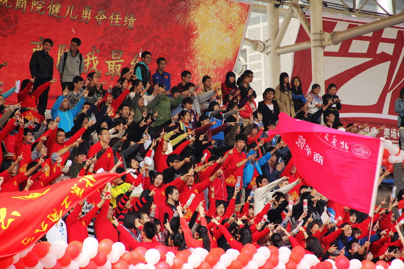 运动会结束后,各学院师生在运动场中央合影留念,高举着手中的奖杯,挥舞着学院的院旗。此时的运动场,团结与友爱凝聚,欢乐与激情定格。