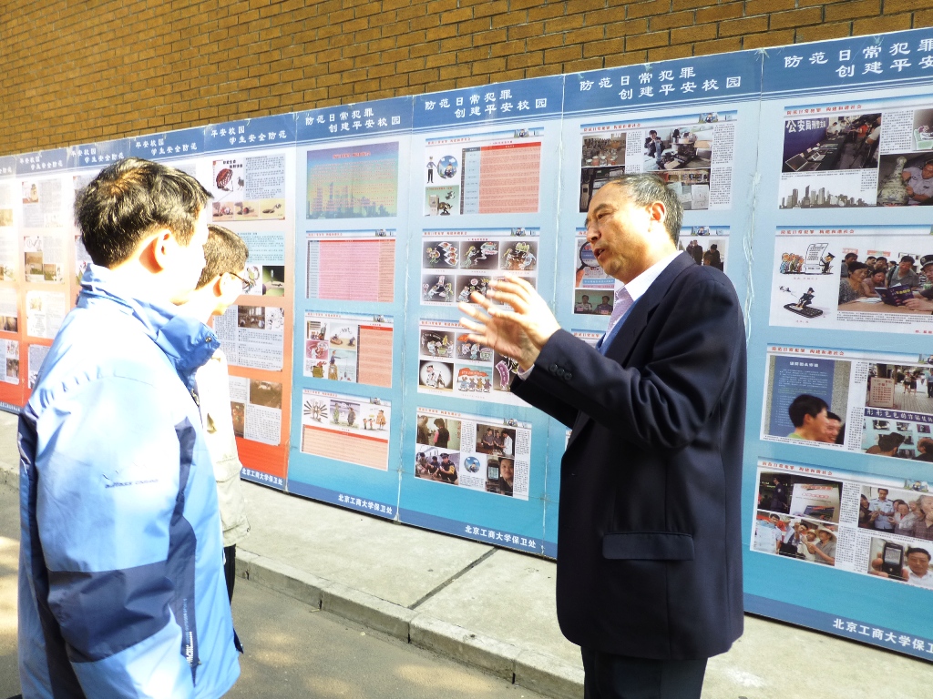 卢思锋副书记向检查组汇报了学校贯彻落实市委教育工委、市教委关于安保维稳工作要求的情况。他指出,十八大前学校已经对阜成路校区、良乡校区进行了全面的安全检查,检查面积已超过60%。下一步将继续对其他公共区域、单体楼宇进行仔细检查,确保检查覆盖面达到100%,并坚持安全检查常态化,进一步形成长效机制。卢思锋副书记表示,学校领导高度重视安全稳定工作,不断加大投入,并及时有效地完成上级布置的各项安保维稳任务。目前学校安全稳定局面整体良好,机构机制健全,规章制度较为完善,责任落实到位,条件保障有力,基本形成了“物防、人防与技防相结合、预防与打击相结合、全面监控与快速反应相结合”的安保维稳工作体系。