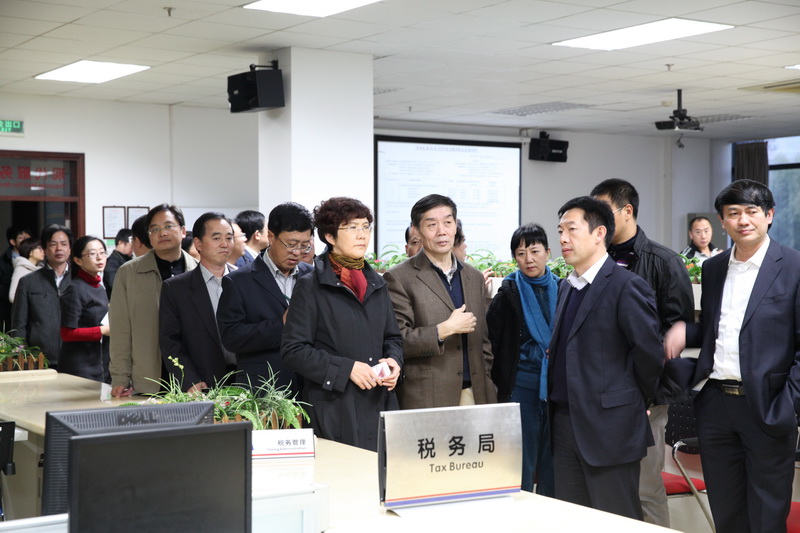 随后,考察团一行在张德玉副书记的带领下先后走访了我校文科实践中心(国家实践教学示范中心)、工科实践中心、图书馆、校史馆和艺术楼。相关部门的负责同志认真向高校领导们介绍了我校在开展实践教学、校史文化建设、提高学生综合素质和实践应用能力等方面所做的工作。高校领导们饶有兴致地观看了我校的模拟法庭、证券模拟大厅、校史馆、新闻演播大厅等场所,观看了学生绘画作品和各种独具创意的灯具、椅子等工业设计作品。