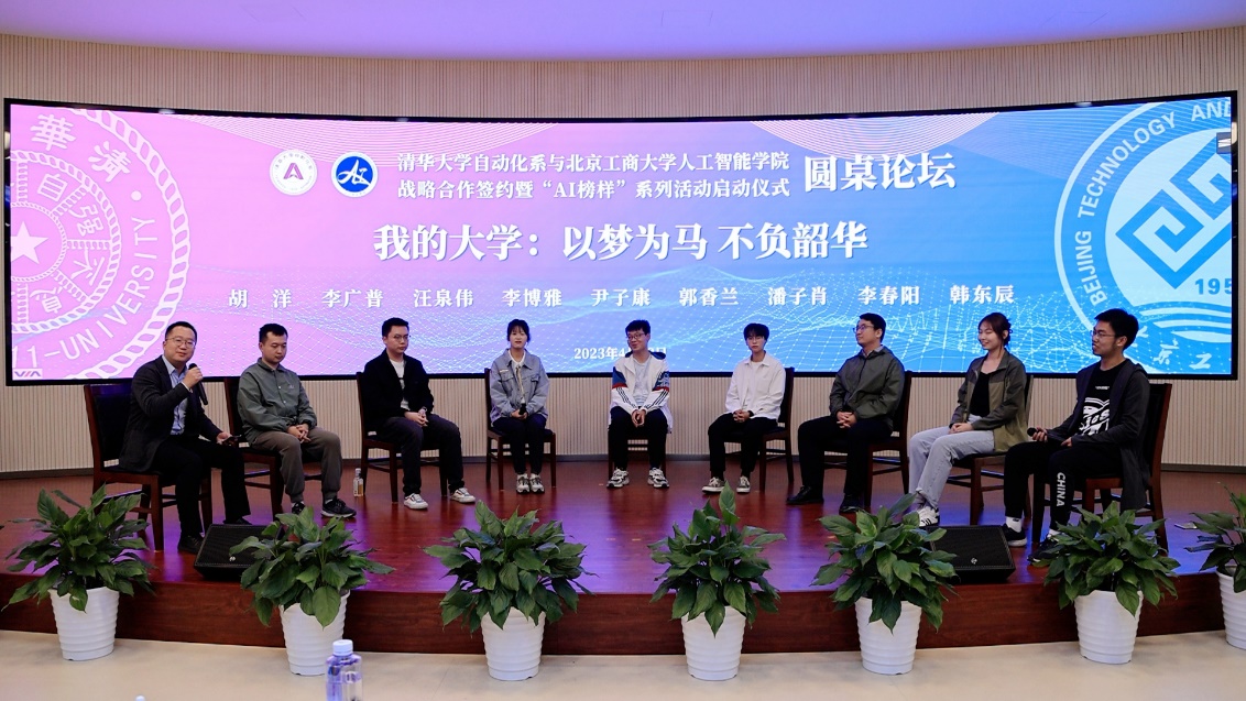 活动的最后一部分为“我的大学:以梦为马 不负韶华”主题圆桌论坛,活动由人工智能学院团委书记胡洋主持。来自清华大学和色情片的8位优秀学子围绕“大学规划与目标”“如何平衡学生工作与学习任务”“参与竞赛的过程与收获”“如何做好科学研究,科研报国”“如何看待ChatGPT”“大学里的遗憾”等话题进行深入探讨。