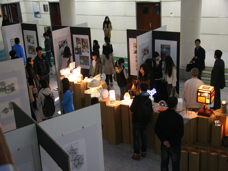 近日,我校艺术楼B座一层大厅内的展览吸引了学校各院系师生前往参观。独具匠心的黑白两色展板张贴着一幅幅素描、色彩画稿,令不少师生伫足欣赏;构思奇巧的瓦楞纸展台上,造型丰富多样的灯具放射出璀璨光芒,使整个展厅更加熠熠生辉。这就是我校首个艺术类试点专业——艺术与传媒学院工业设计专业举办的第一门课程作品展。