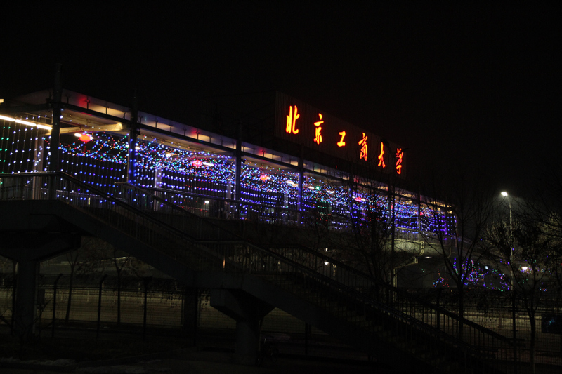 新年将至,校园里到处洋溢着欢乐喜庆的节日气氛。树上闪烁着五颜六色的彩灯,天桥上装扮的彩灯和灯笼显得格外喜庆、温馨,“欢度新年”的红色横幅在学生活动中心门前铺开,文体馆前悬挂着的“2013”彩灯字样绚丽夺目。