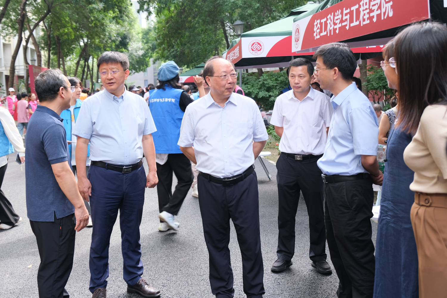 “你来自哪里?”“来的路上顺利吗?”“初来学校还适应吗?”……走进新生宿舍,校领导们与同学们心贴心交流,并表示,学校将尽最大努力为同学们提供舒适暖心的学习环境,希望同学们树立远大志向,在北工商实现青春梦想。