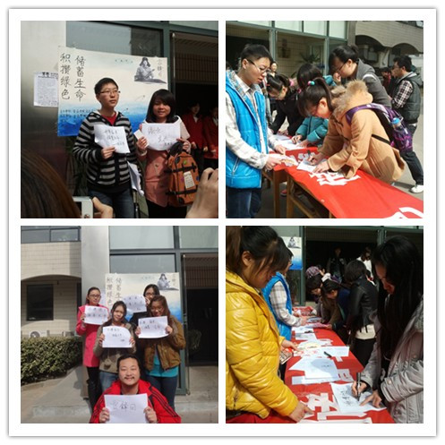 3月8日,食品学院在阜成路校区开展了以“学雷锋,添绿色”为主题的环保倡议活动。学生拿出已经废弃的纸张,在纸的背面写上自己的学雷锋宣言,并倡导大家不随便乱扔垃圾,不浪费纸张,不使用一次性筷子,保护环境——保护人类赖以生存的家园。活动虽小,但每个学生都融入其中,争做雷锋精神的践行者。一个人的力量是有限的,集体的力量是无穷的,通过对环保的倡议活动,积极鼓励和带动全校加入到学雷锋的活动中,加入到对环境保护的行动中,倡导大家积极行动起来,共同建设天蓝、地绿、水清的美丽中国,实现绿色的“中国梦”。