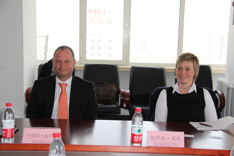 4月1日下午,牛津大学赫特福德学院国际培训项目和会议主管凯罗琳·莱丝(Caroline Rice)以及教学与语言项目总监安德鲁·海明威(Andrew Hemingway)一行两人来我校访问。李朝鲜副校长在阜成路校区接见了代表团。