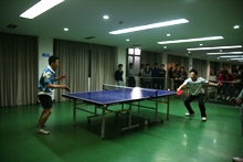 3月28日晚,文体馆一层进行了体育文化节乒乓球比赛决赛暨“五·四杯”2013年首都青年学生乒乓球赛选拔赛。男子组5名选手与女子组4名选手在比赛中奋力拼搏,他们以娴熟高超的技战术和稳定的发挥,为在场观众呈现了激烈精彩的比赛。最终,赵军军夺取男子组比赛冠军、徐子涵获得女子组比赛冠军。至此,乒乓球单人赛告一段落,未来一周体育文化节将举办乒乓球班级团体赛。