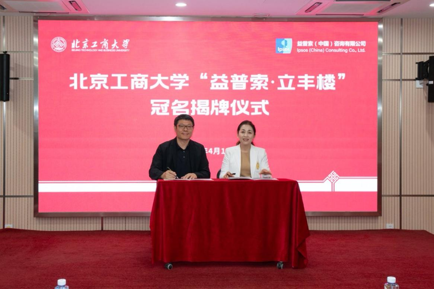 郭建华、刘立丰共同为“益普索·立丰楼”揭牌,开启了我校与益普索中国合作的新篇章。