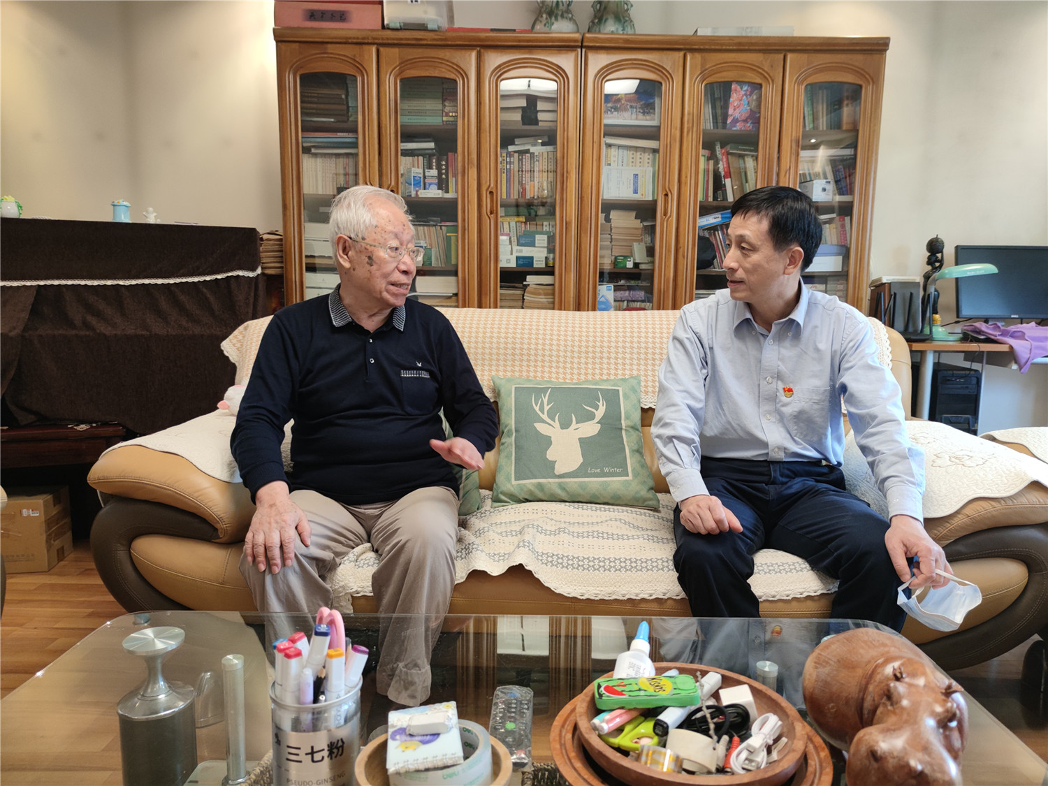 王伟一行先后来到离退休老同志吴同砚和丁士堃家中,与他们亲切交谈,询问身体及生活情况,感谢他们为学校发展建设作出的贡献,希望老同志们一如既往关心和支持学校工作。在国庆佳节到来之际,衷心祝愿老同志们节日快乐,幸福康健!王伟副书记与老同志们促膝交流,了解老同志们的困难需求和对学校的意见建议,叮嘱他们保重身体,保持乐观心态,安享幸福晚年。
