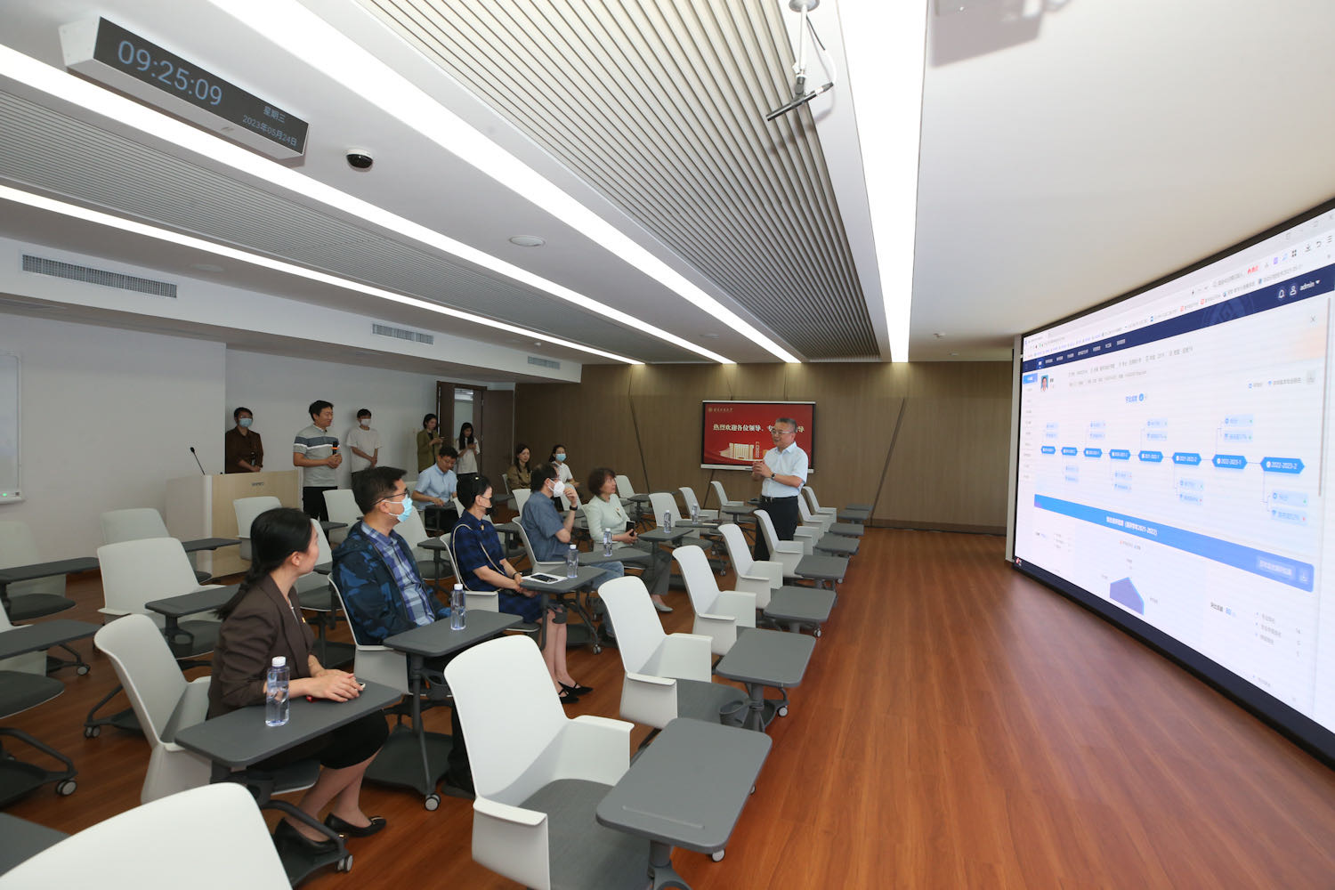 座谈会前,冯伟一行实地走访了学校数字未来中心,曹显兵介绍了中心建设情况、信息技术与教育教学深度融合等有关情况。