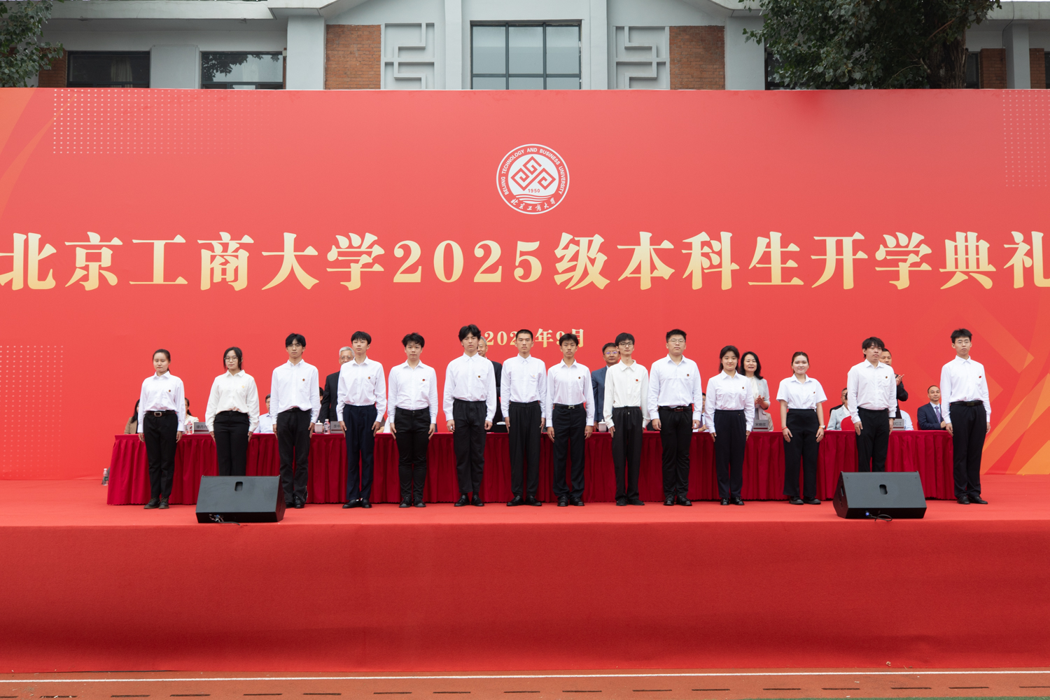 典礼特别设置“集体庆生”环节,学生辅导员为5名在典礼当日过生日的2025级新生送上生日蛋糕,全场师生齐唱生日歌,温馨祝福洋溢整个操场,彰显北工商浓厚的人文关怀。这一刻,家的温暖与大学的仪式感完美交融。