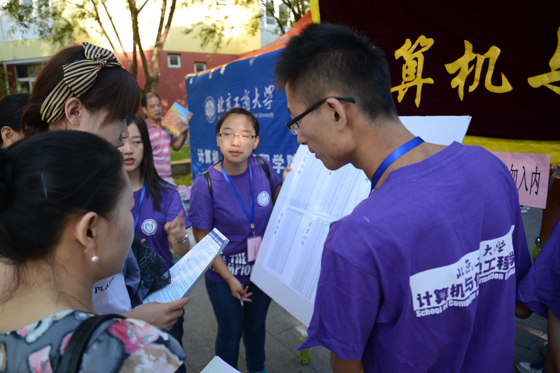 今天,北工商张开双臂,与来自五湖四海的学子热情相拥。在地铁良乡大学城站,志愿者们热情细心地服务,一辆辆“迎新专车”成了新生对北工商的第一印象。天桥上、道路两旁所精心布置的条幅、展板、导航图等让新生及家长进一步认识学校。“最美中国,美丽校园”优秀摄影展等展览前也吸引了不少新生及家长前来观看。校园广播中播放着学校介绍,帮助新生尽快熟悉学校情况,融入校园生活。志愿者服务站还为新生及家长准备了充足的饮用水和座椅,满头大汗的学生志愿者们耐心解答、服务。