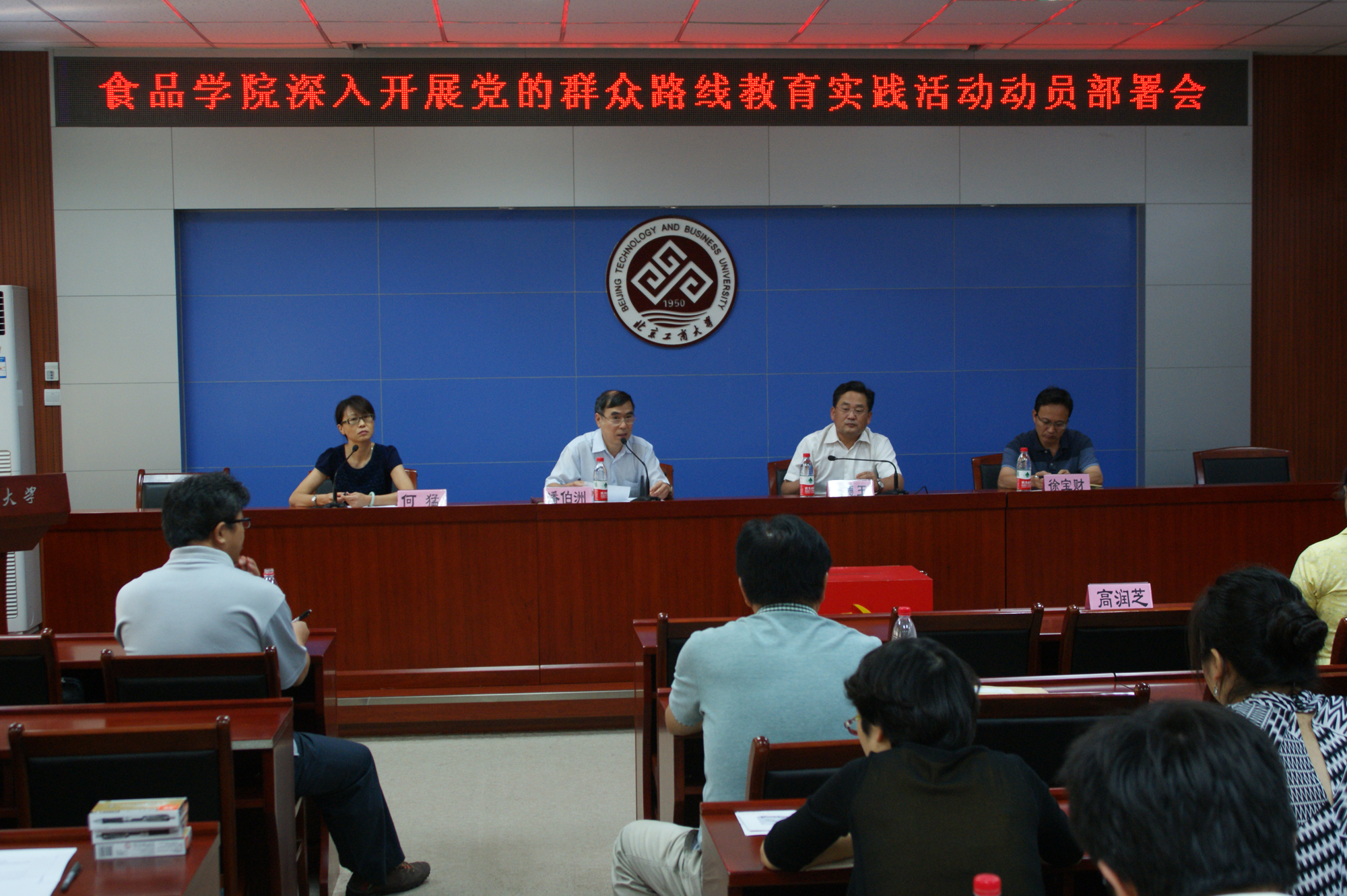 8月29日上午,食品学院召开党的群众路线教育实践活动动员部署会,部署学院教育实践活动。校党委副书记、纪委书记、学校教育实践活动领导小组办公室主任张德玉出席会议并讲话,纪委副书记潘伯洲、学校党建督导高润芝参加会议。会议由食品学院党总支书记何猛主持。学院领导班子成员、全体教职工党员、党外人士代表及学生党员代表参加会议。