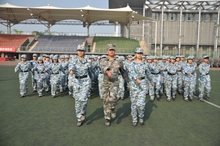 虽然目前是在训练阶段,但是学生们仍然精神抖擞,士气高昂。从排列成队到变换队形,再到喊出响亮的口号,在营长的指挥下,方阵队伍有条不紊地练习着。由于刚开始训练,同学们的动作还不是十分协调。教官们耐心地纠正训练中所出现的错误,经过几次反复指令的训练,能够很明显看到同学们的进步。当然,整齐统一的步伐离不开每位同学的认真与努力。他们在训练中相互纠正、相互配合,使方阵训练的统一性与整齐性得到很大程度的提高!