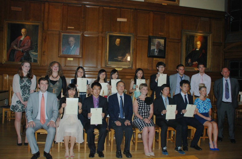 在14天的培训学习中,赫特福德学院(牛津大学共有39个学院组成,我校接待方赫特福德学院是历史最悠久的学院之一)授课教师根据学生的相关专业和英语水平,组成不同类型的学习小组,教授商务谈判技巧等方面的专业知识。培训交流团的每位同学积极参与,结合所学知识,设计自己的方案。在培训交流任务结束时,学生们分成若干小组,进入模拟企业运用所学的商务谈判技巧进行相关业务的演练和展示,赫特福德学院教师也根据每位同学的学习表现进行了总结和评定成绩。最后在欢快的烛光晚宴上,赫特福德学院为每位学生隆重颁发培训结业证书。