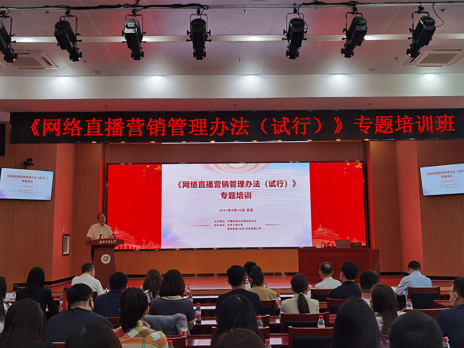 为加快落实《网络直播营销管理办法(试行)》,进一步发挥中网联桥梁纽带作用,提升平台和主播等主体责任意识,促进新业态健康有序发展。近日,由中国网络社会组织联合会主办、我校电商与物流学院协办的《网络直播营销管理办法(试行)》专题培训在阜成路校区举行。党委书记黄先开受邀出席会议并致辞。培训开幕式由学校人事处处长、电商与物流学院执行院长左敏主持。