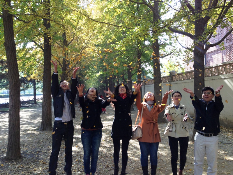 本次心理健康教育专题论坛分为讨论、分享、体验三个模块。首先大家就大学生心理健康教育与辅导员工作的关系以及深度辅导谈话中的心理沟通问题等展开讨论。辅导员们表示深度辅导是了解和解决学生问题最好最直接的方法,但是由于心理辅导专业水平或者方法掌握有限,心理辅导工作中存在一定困惑。为解决这一问题,刘立新老师带领辅导员通过“你觉得辅导员工作像什么”的心理游戏,分享和交流了各自的工作体会。刘立新老师通过大家对辅导员工作认知的描述,探讨了每个人工作中可能存在的外在和内在原因,结合第一环节中大家提出的问题,分析了解决工作中困扰的方法。刘老师强调在跟同学谈话的时候,一定要站在学生的角度,拉近与学生的距离,引导学生主动思考,从学生自身出发寻找解决问题的办法。随后,参加本次论坛的辅导员走入大自然,迎着秋日的暖阳,踏着金黄的银杏叶,欣赏美景,舒放心情。