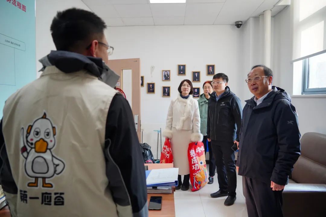 在学生活动中心,黄先开一行走访慰问了“第一应答”学生服务热线值班学生,感谢他们除夕节坚守岗位,为同学们答疑解惑。