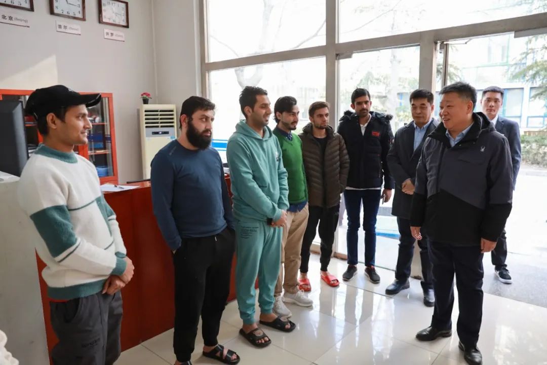 在阜成路校区,左敏一行来到东区3号楼学生宿舍、留学生公寓,看望留学中外学生。“在学校过节还习惯吗?” 左敏与留校学生亲切交谈,询问了学生的假期学习生活和就业情况,并勉励同学们要继续保持学习的热情,合理规划假期,充实自己,同时要保持与家人的密切联系,遇到困难及时与学校、学院联系。