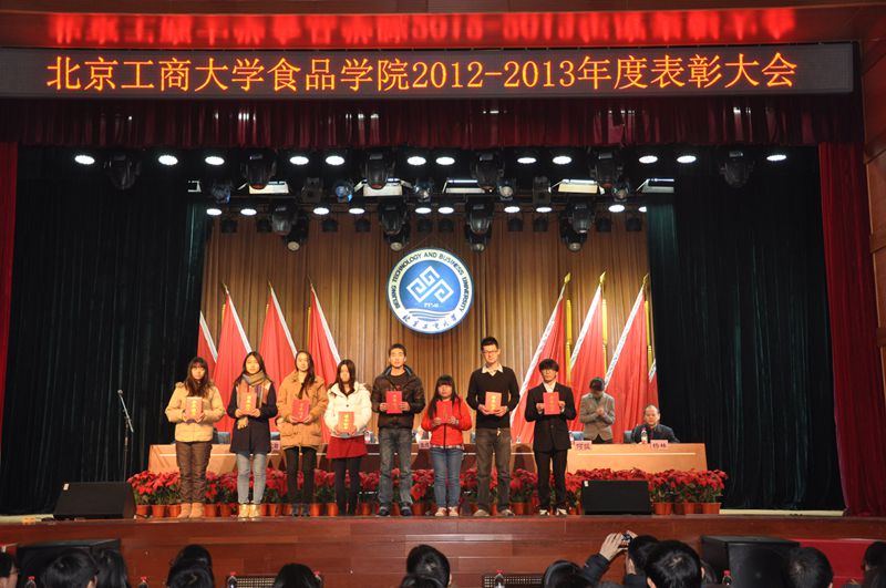 12月18日,食品学院在阜成路校区举办2012-2013年度表彰大会。学校党委副书记、纪委书记张德玉出席会议。钟香驹奖学金设立者钟香驹教授、Ashland投资有限公司刘英才先生及刘莉莉女士,我校学生处副处长杨林、学院领导、全体班主任及辅导员参加会议。表彰会由党总支副书记胡燕霞主持。