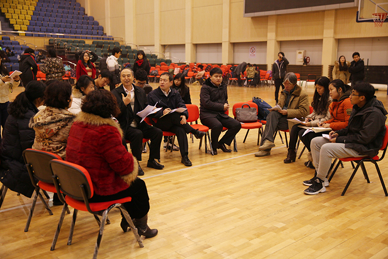 12月25日,2014年元旦晚会在文体馆再次进行审核。党委副书记卢思锋亲临现场指导。参与本次彩排的有歌舞、小品、管弦乐等节目,尽管文体馆内温度很低,但师生们的热情高涨,表演卖力。作为特色节目,《工商大舞台》的同学们更是在审核工作结束后进行反复打磨、精益求精,并与指导老师积极交流。审核工作结束后,卢思锋副书记与体育与艺术教学部、团委、宣传部等部门负责人就晚会的舞台设计、节目顺序以及存在的问题进行细致讨论,提出建议,力求为师生们打造一场难忘的视觉盛宴。