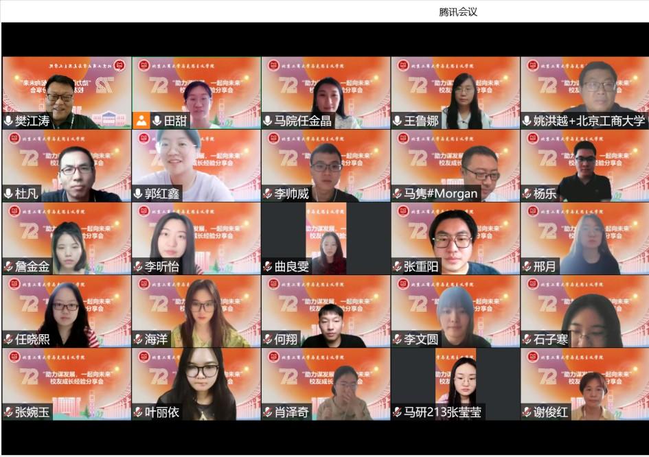 马克思主义学院以“助力谋发展,一起向未来”为主题,线上举办庆祝建校72周年校友成长经验分享会,邀请在高校、党政机关、国有企业就职的三位校友介绍成长经验,为在校研究生们提供学习、求职及职业发展相关指导和帮助。学院领导班子成员、导师代表及全体在校研究生参加了活动。