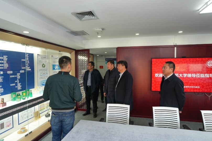 座谈结束后,徐海阳一行在阜成路校区实地考察了数字未来中心、化妆品监管科学研究基地、蛋白资源开发与营养食品研究实验室及中国轻工业酿酒分子工程重点实验室,就科研成果转化、数字赋能教育教学等进行了解。