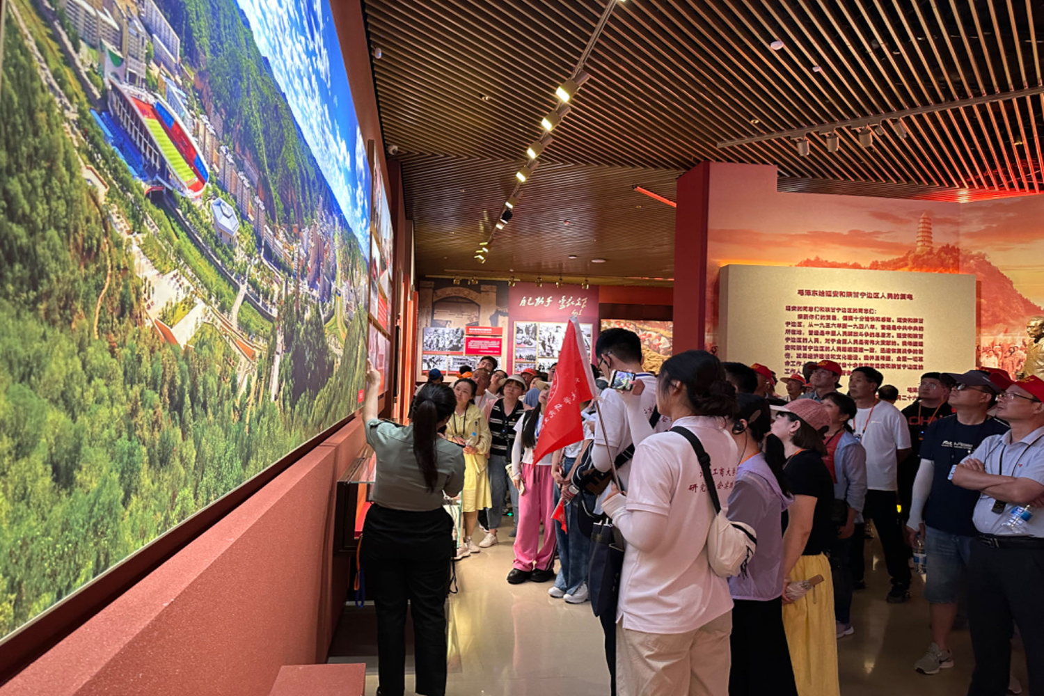 实践团成员还随着总书记的足迹走进延安市南沟村。南沟村,曾是一个贫困发生率高、土地利用率低以及产业基础薄弱的山沟穷村。面对现实情况,南沟村党支部立足实情,通过“支部引领、合作经营、企业带动、群众参与”的发展模式,大力发展现代农业、生态旅游、研学教育等产业,并强化创新改革,不仅带动了村民们的增收致富,还实现了组织、产业、文化、生态和人才的全面振兴。南沟村也从一个“出行难、娶媳难、干事难”的“空壳村”,变为了中国美丽休闲乡村、全国扶贫经验交流示范基地。