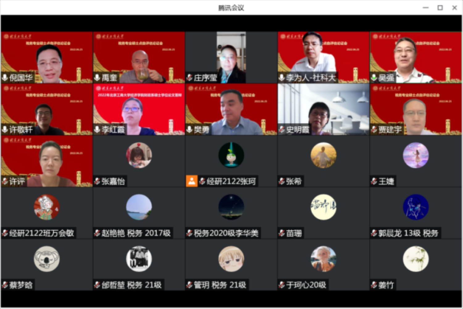 6月25日上午,税务专业硕士学位授权点召开自评估专家论证会。受邀出席本次论证会的专家组成员有:全国税务专业学位研究生教育指导委员会委员、中央财经大学樊勇教授,全国税务专业学位研究生教育指导委员会委员、首都经济贸易大学李红霞教授,对外经济贸易大学庄序莹教授,中国社会科学院大学李为人教授和中国人民大学禹奎教授,五位专家均为所在院校税务专业硕士点负责人。