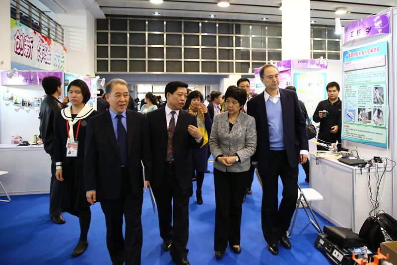 开幕式结束后,各位领导与嘉宾莅临位于文体馆一层的展览中心,仔细观看同学们的作品并时不时询问交流,提出诚挚与宝贵的意见。参赛同学也彼此进行交流,相互介绍自己的研究成果,相互吸取经验,共同进步。