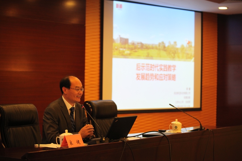 教务处处长魏中龙分析了实践教学和实验室建设的现状及主要问题,提出了具体的工作思路和改进措施。他谈到,要通过优化实践课程体系结构、理顺专业理论课程与实践环节之间的逻辑关系、建立培养标准与实践课程体系之间的二元矩阵关系,加强实践环节的安排,注重设计性、综合性和创新性实验的开展,培养学生解决问题的能力等思路,着力解决实践教学问题,从而提升实践教学水平。实验室建设要通过专项驱动和按年按需依次实施的工作思路来确定实施项目,从而科学规划实验室布局,整合开放实验室资源,解决实验室建设实际问题。