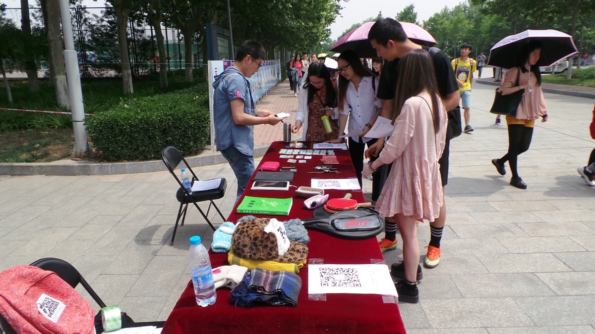 活动现场,保卫处特别准备了宣传品,并摆放了大量的近期无人认领的物品,包括学生卡、身份证、电子产品、手表、眼镜等。现场围满了前来咨询的学生,大家纷纷查看失物,记下微信帐号。截至活动结束时,有六样物品被学生领回。学生对网上失物招领平台给予充分肯定。