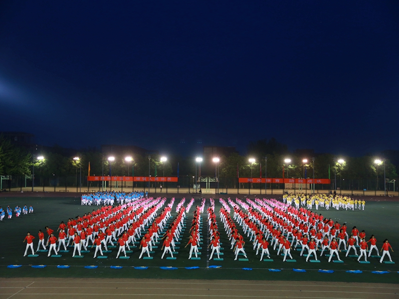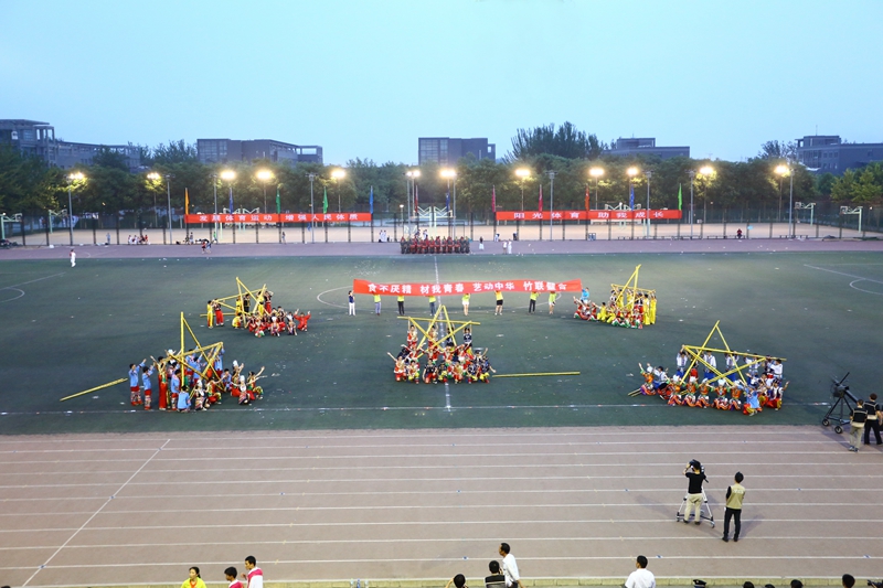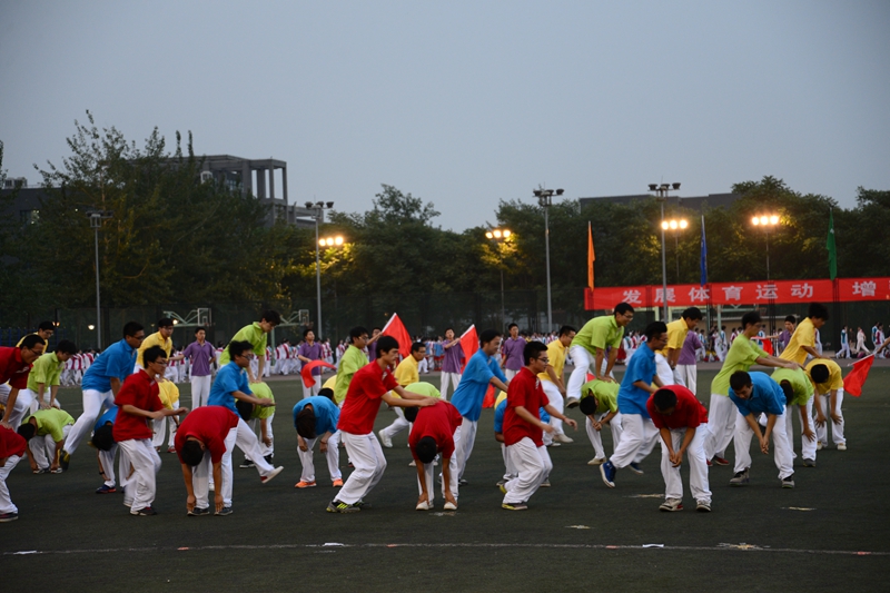 开幕式的压轴节目是由来自全校9个学院的896名女生带来的准备已久的体能热力操表演。女生们组成红、黄、蓝、粉方阵,进行热身操、健身球、弹力带、踏板和跑跳表演。千人团体操表演是历届运动会开幕式中一道最靓丽的风景线,一个备受瞩目的团体项目,无论是2012年团体操,还是2013年啦啦操,工商学子总是向所有人展示着北工商独有的魅力风采。而今年的体能热力操,更是加大了动作的难度,增加了队形变换环节,编排精彩,动感十足,女生身着色彩鲜艳的服装,个个青春洋溢,充满情绪的表演将现场气氛带至高潮!
