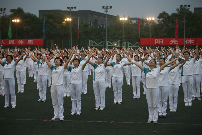 “第九套广播体操现在开始!”随着音乐声响起,来自14个分工会的930名教职工的千人广播操拉开了开幕式的序幕。课内外用心育人的老师,在绿茵场上用整齐划一的动作、充满活力的步伐赢得了在场观众如雷般的掌声,展示出我校教师们昂扬的精神风貌。