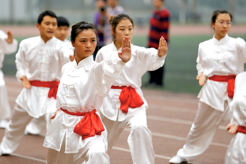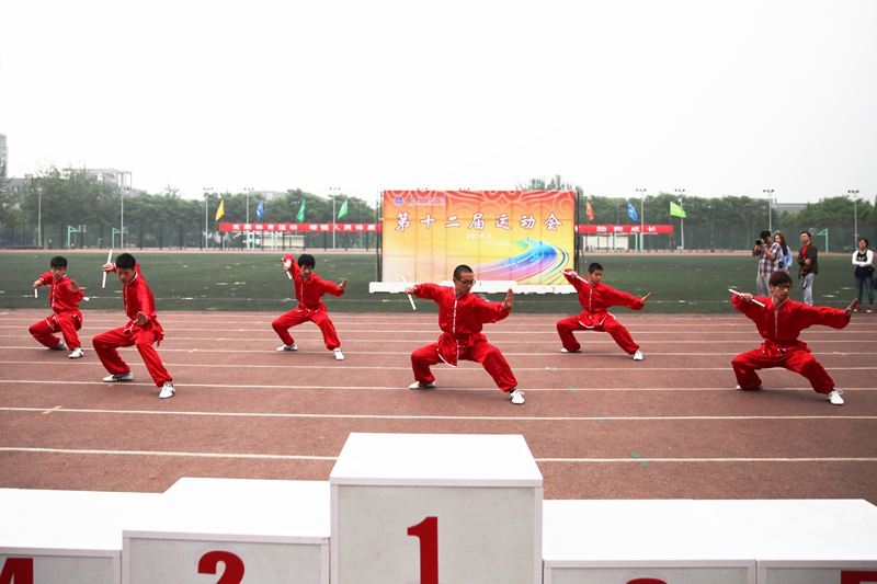 从细雨朦胧到雨过天晴,同学们热情不减,挥舞着手中的大旗,呼喊着各自的口号,一次又一次为场上的运动员加油。各项赛事结束后,由我校十几名学生组成的武术表演队带来了精彩的武术表演与双节棍表演,引来同学们阵阵欢呼,将闭幕式的气氛推向高潮。