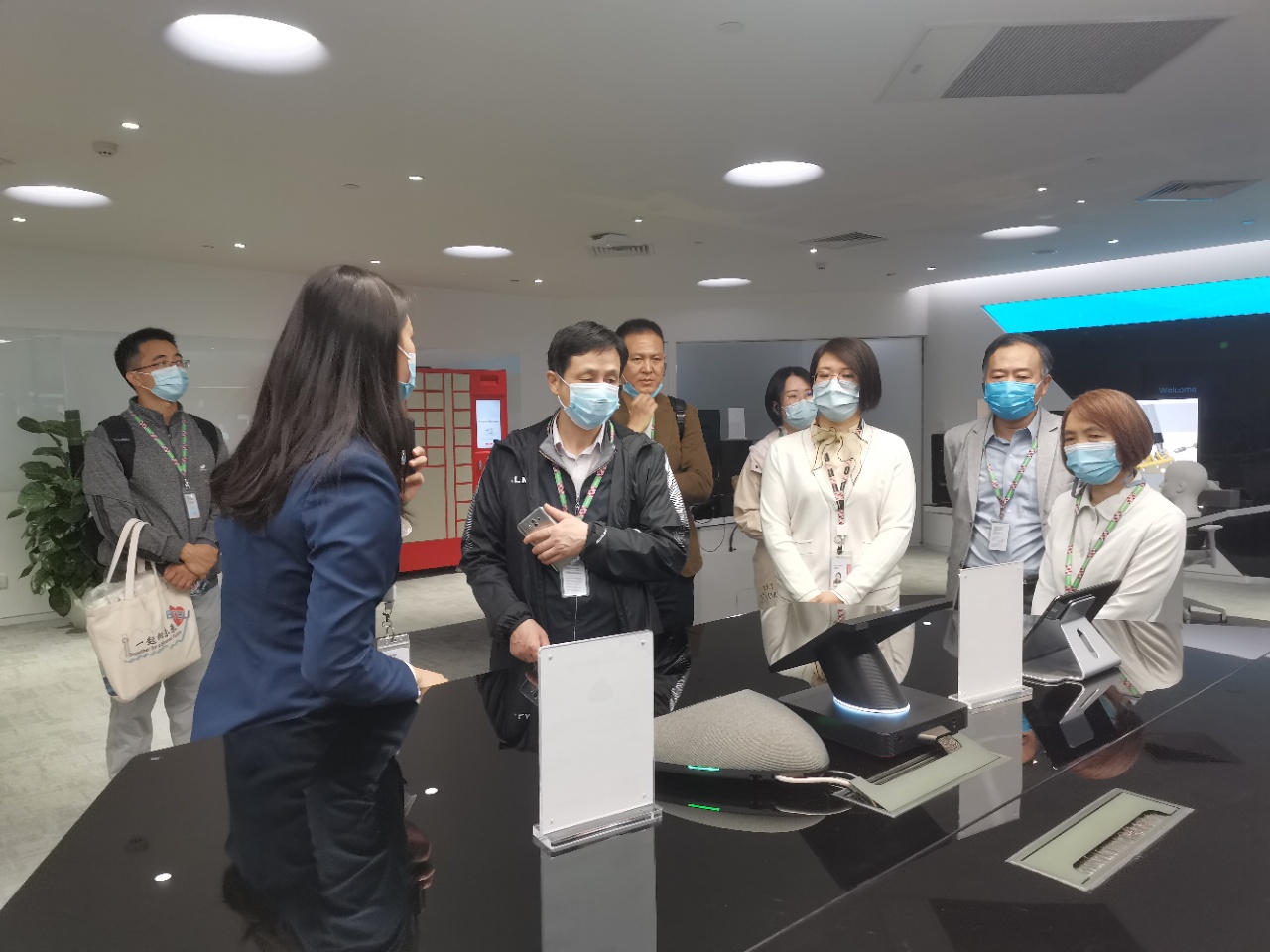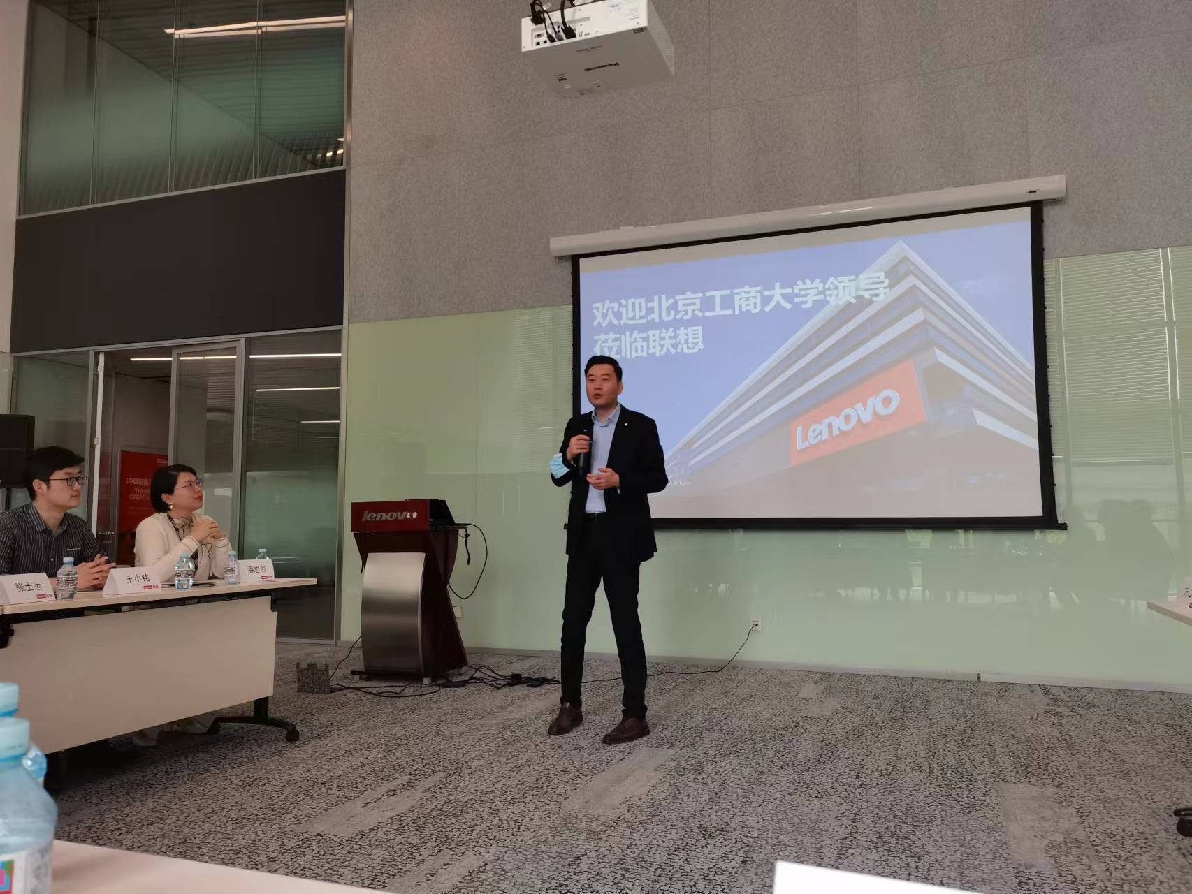 学校调研团在联想集团高教客户经理潘思彤等人的陪同下参观了联想集团全球未来中心和可靠性综合环境实验室。随后双方领导及成员会面,并就科技项目合作、实验室建设、人才培养及就业等领域进行商讨。