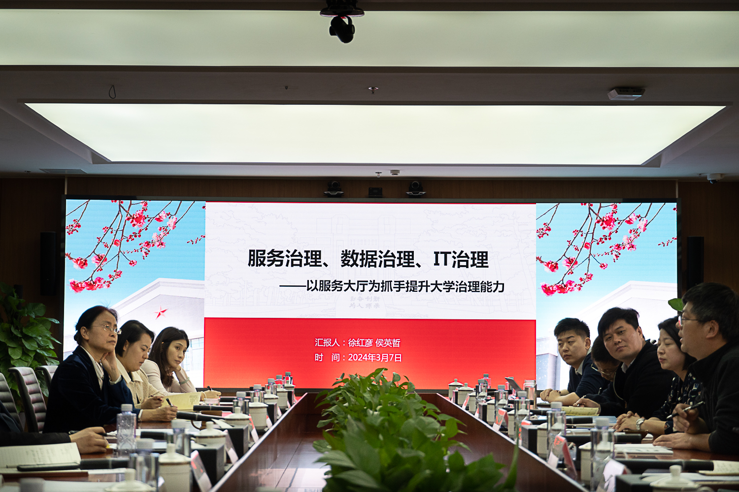 郭建华对徐红彦一行的到来表示热烈欢迎。他指出,构建规范的流程化体系是学校管理工作实现“边界清晰、分工合理、权责一致、高效服务”的关键,也是增强综合治理效能,提升师生满意度和幸福感的重要举措。各有关单位要以此次专题培训为契机,进一步统一思想、明确任务、细化分工,以目标导向和问题导向为抓手,切实梳理好相关制度,理清办事流程,打通数据壁垒、提升服务质量,以高质量数据和服务治理助力学校事业高质量发展。