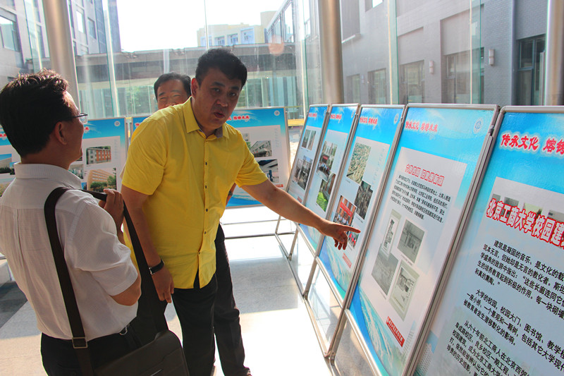 图片展分为“六秩校园·旧貌换新颜”、“传承文化·荒地变新景”、“二期启航·历史铸未来”三个篇章。学校建筑各历史时期的图片对比展现了阜成路校区近年来修缮后的优雅温馨。良乡校区一期的靓丽美景和二期规划的伟岸恢弘,体现学校“物质条件是基础,人才培养是核心,学科建设是关键”转型发展的核心理念。